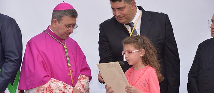 Lo stemma di Mons. Visco reca uno scudo a forma di